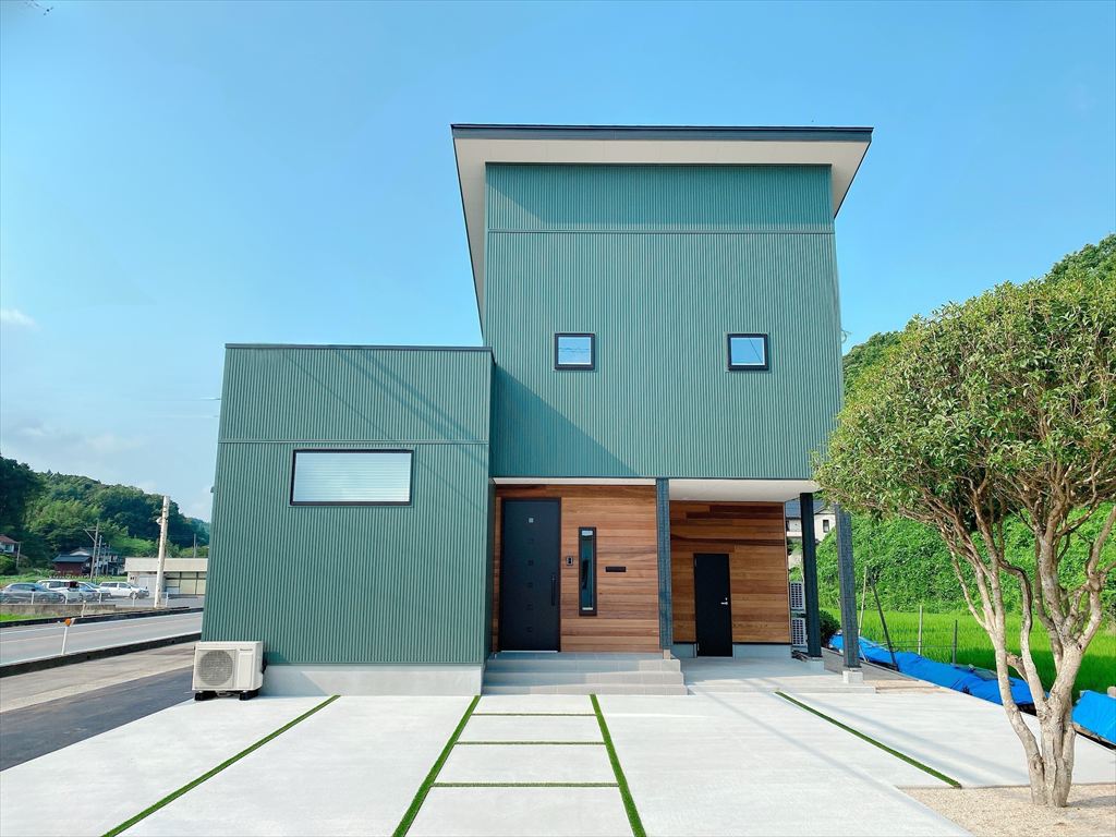 雲南市S様邸 映画鑑賞が楽しめる緑の外壁が美しい家